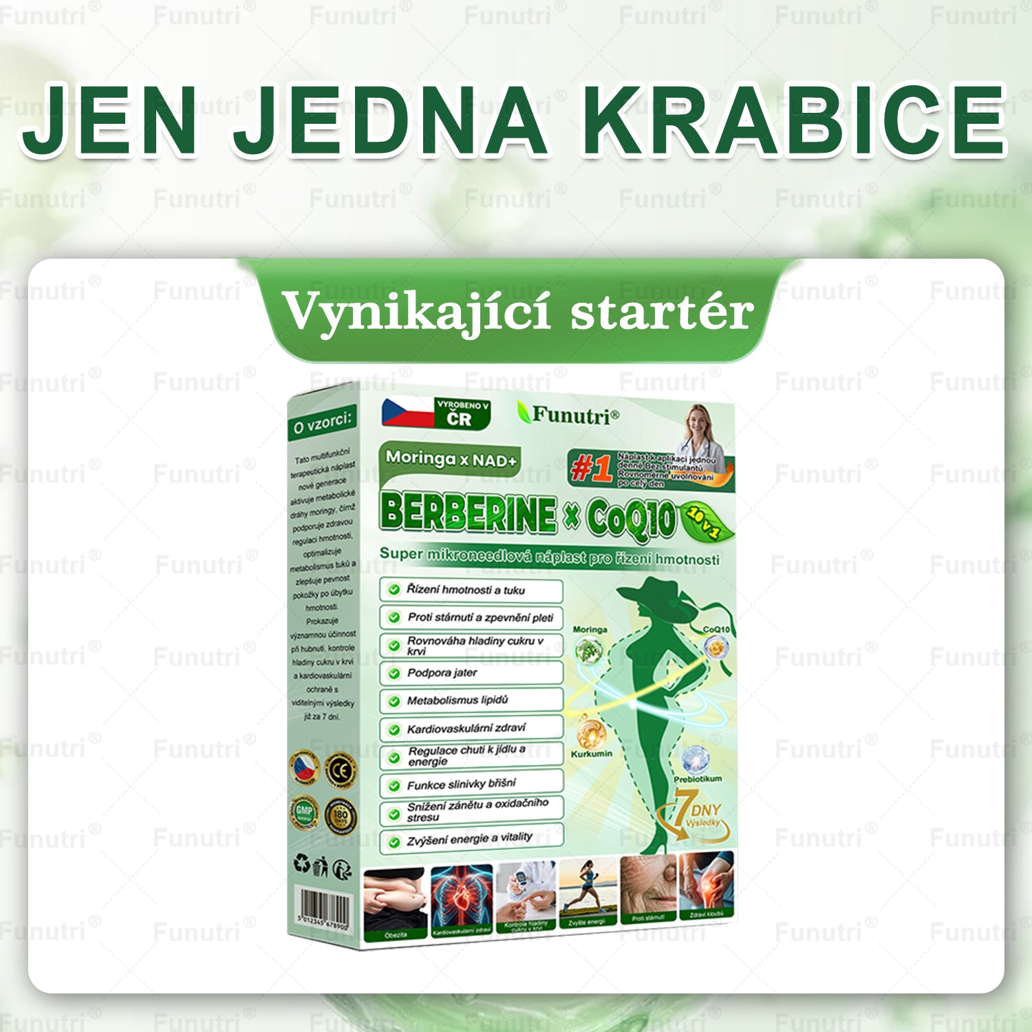 Funutri® Moringa × NAD+ × Berberin × CoQ10 Super microneedlová náplast pro regulaci hmotnosti Klinicky testováno odborníky na endokrinologii, Funutri® Moringa × NAD+ × Berberin × CoQ10 Super microneedlová náplast obsahuje zcela novou přírodní formuli s vylepšením trojnásobné síly. Klinicky zřetelné zlepšení již za 7 dní — žádný efekt jo-jo efektu.